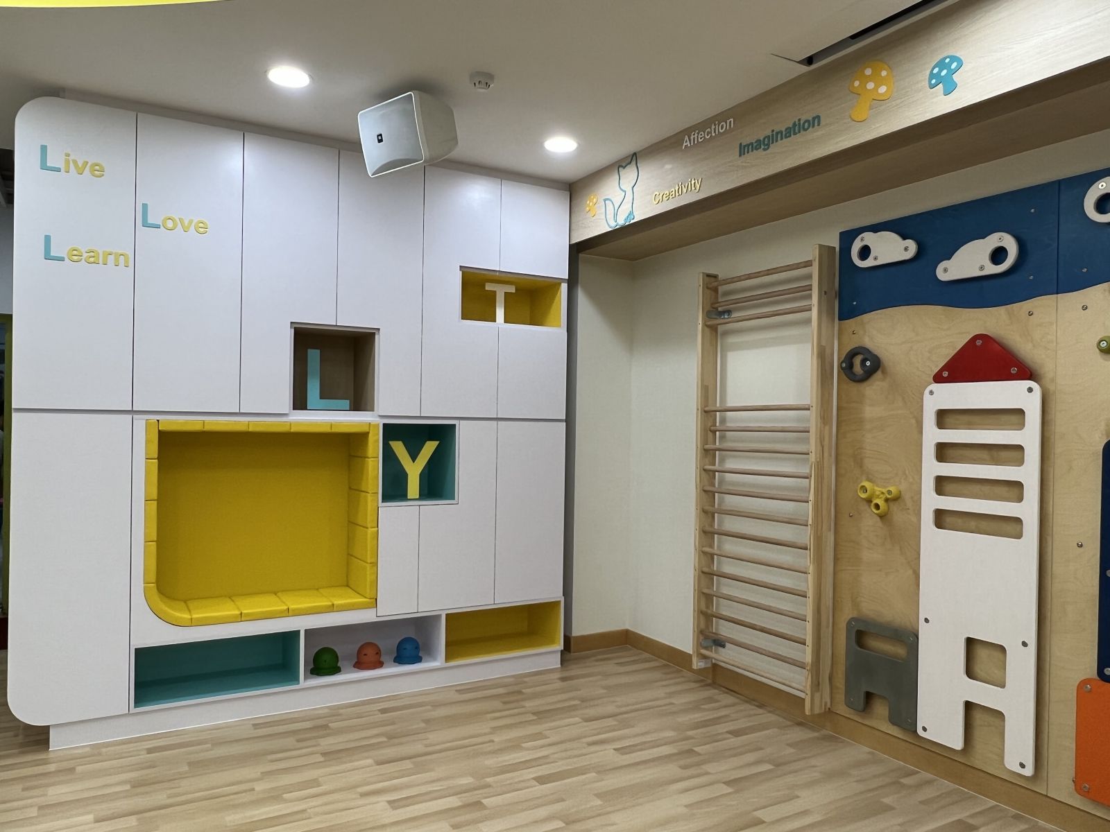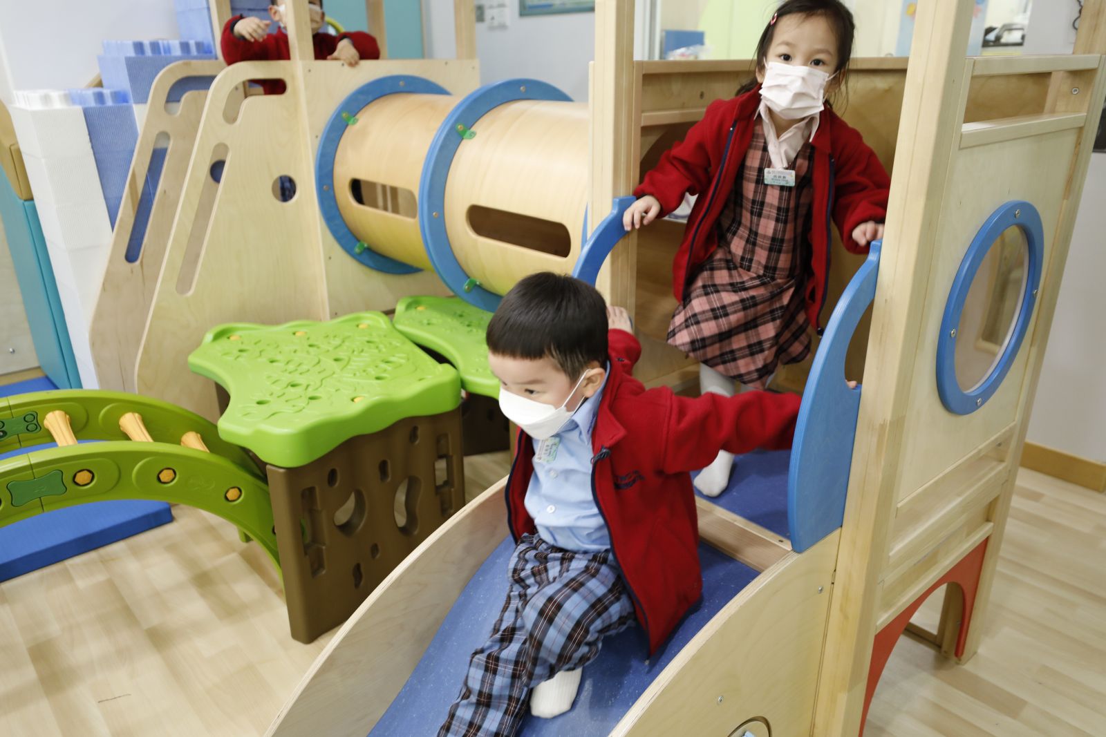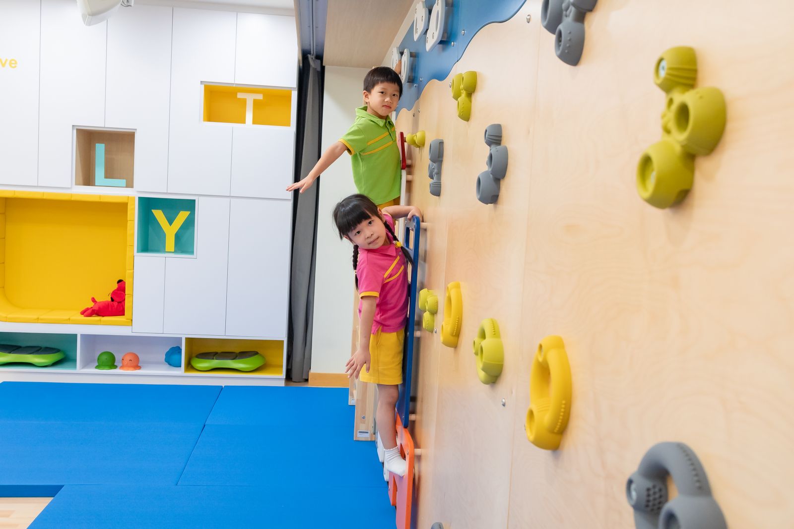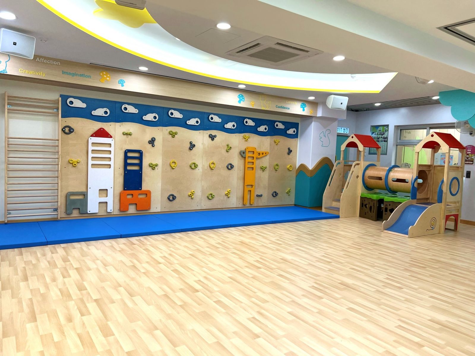 本年度新加入室內攀石牆、繩網梯、多功能滑梯,以及智能跳繩機,為幼兒提供更多元化體能活動。