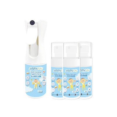 憑著優惠券可以優惠價$150購買ASFABaby 新手媽媽必備套裝,包括ASFABaby 多功能衛生噴霧160ml 1支及嬰孩消毒噴霧60ml 3支 (總值$454),每券限買1套,數量有限,售完即止。
