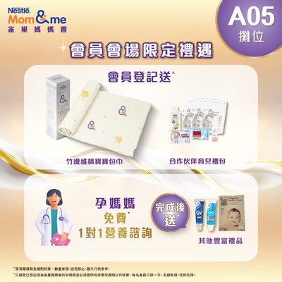 ^只接受已登記成為雀巢媽媽會的孕媽媽並必須提供有效懷孕證明以作核實。每名會員只限一次。名額有限,先到先得。申請人須為準媽媽或寶寶未滿48個月的媽媽。受條款及細則約束。數量有限,送完即止。每位成功登記者只限換領禮品乙份。