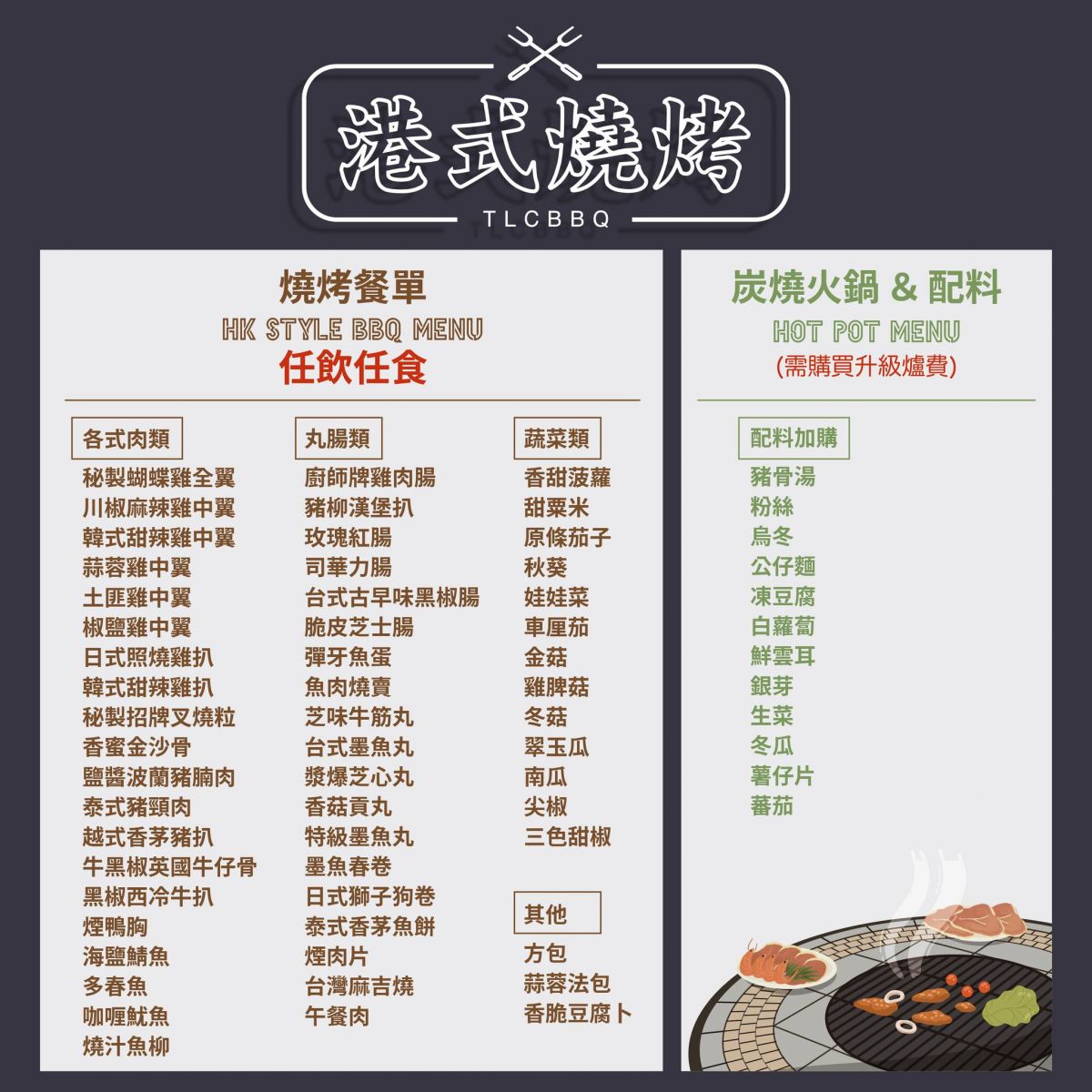 - 燒烤餐:$730/ 4-5人,$1050/ 8-9人