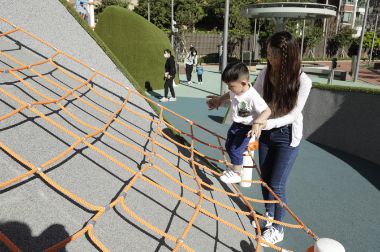 另一個必玩的遊樂設施,非這個超好玩繩網及繩索橋莫屬,小朋友都愛跑上去攀爬。至於設置中央位置的繩索橋,更是每個小朋友爭相要玩的遊戲之一。而且繩網及繩梯用了搶眼的橙色,十分奪目。