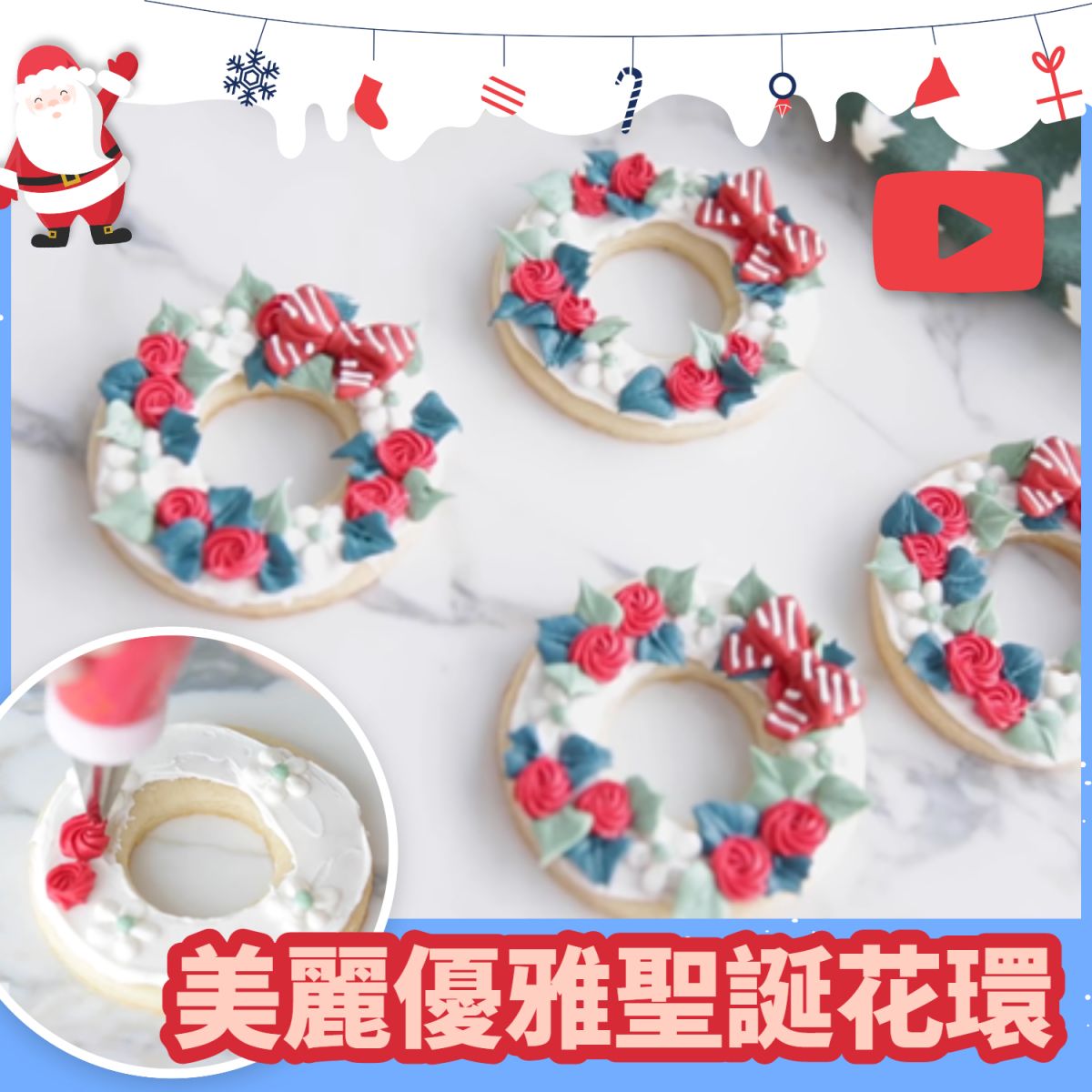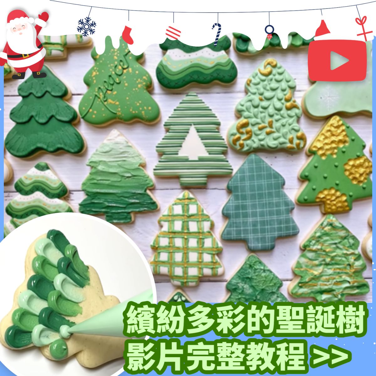 當製作好聖誕形狀的餅乾後,就可以發揮創意進行裝飾啦!一起來看看YouTube達人是如何裝飾她的餅乾的吧!