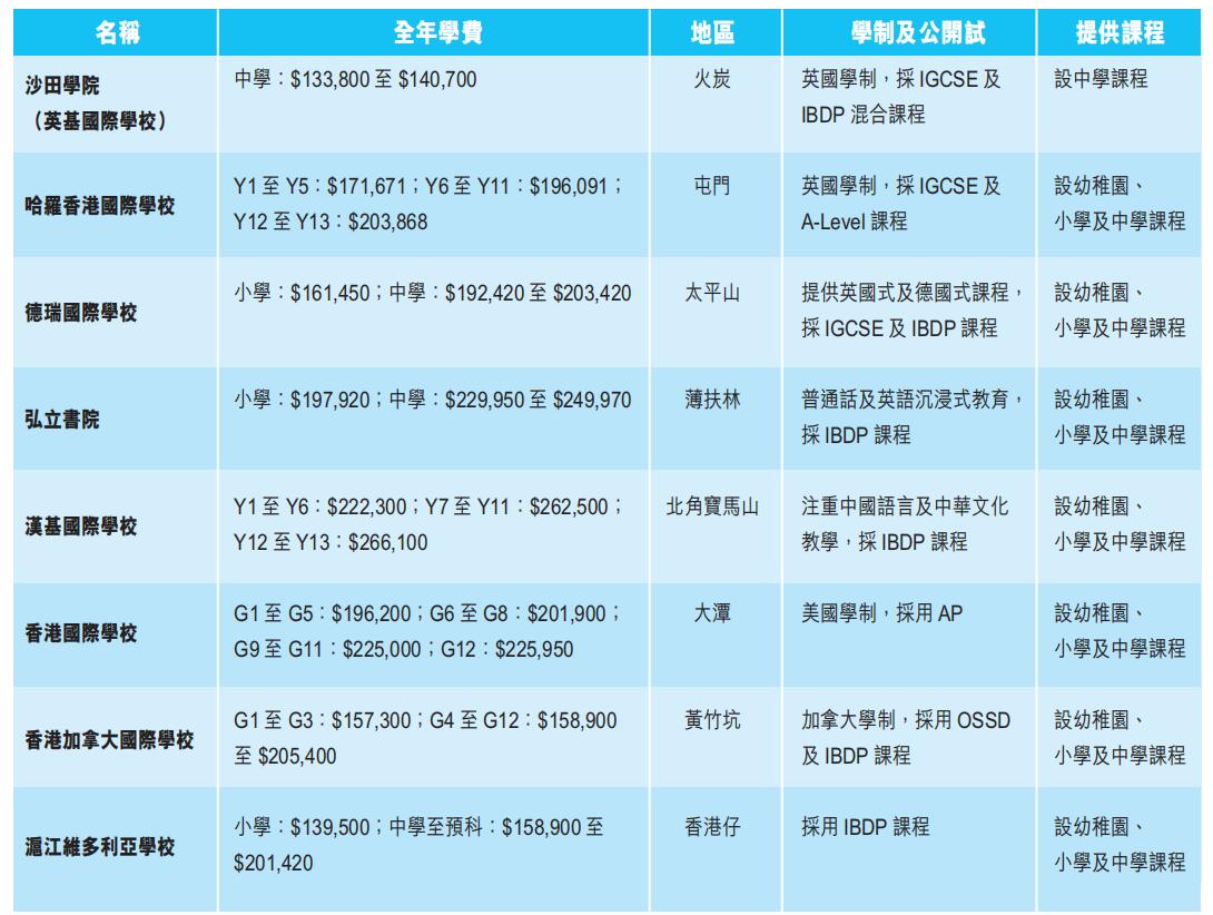 註:以上學費截止 2020 年 12 月為止,如有變動,請以該校公佈為準。