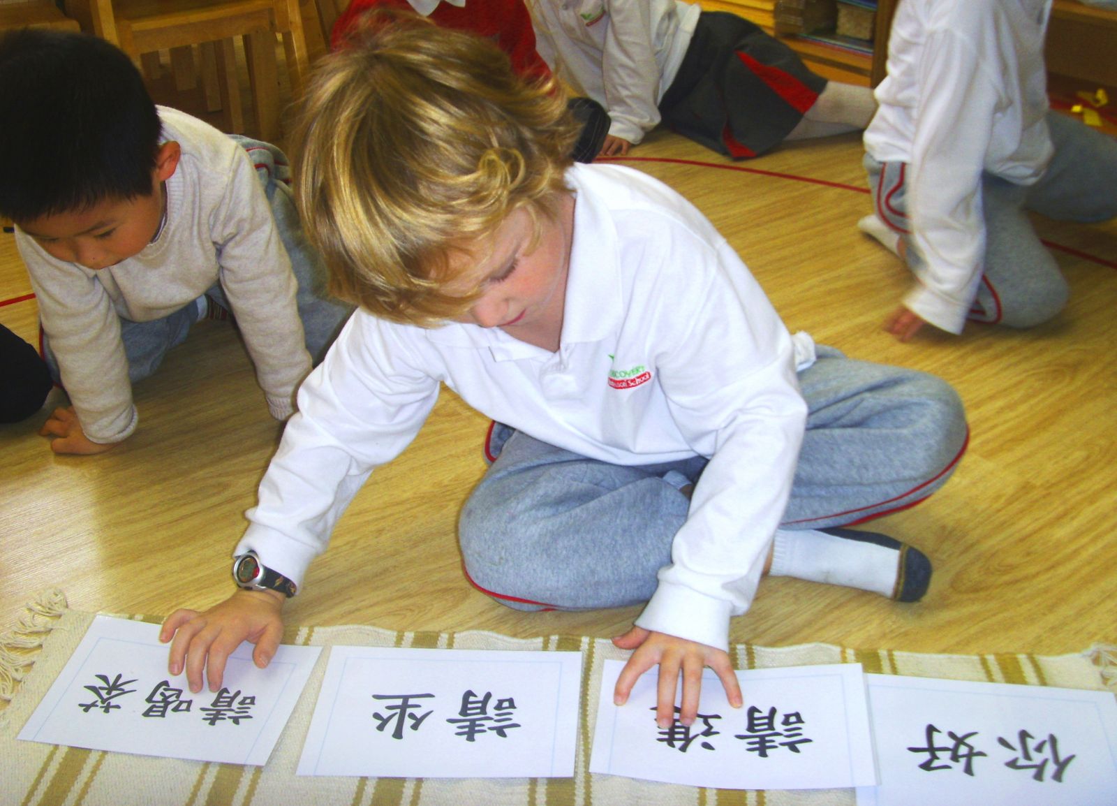 學校提供自編及具系統性的雙語課程。每個課室中都有兩位母語班主任,一位英語、一位普通話老師。兩位老師會以他們的母語教授相同主題的內容,以鞏固兩種語言的詞彙、增加學生記憶力。在全雙語環境中進行日常交流,學生會自然掌握兩種語言溝通技巧及語文結構,奠定扎實的語言基礎。隨着學生進入小學階段,根據他們的普通話水平,他們被分為母語和非母語流,讓他們得到合適程度的中文課程。踏入中學階段時,聽說讀寫都達到理想的水平。