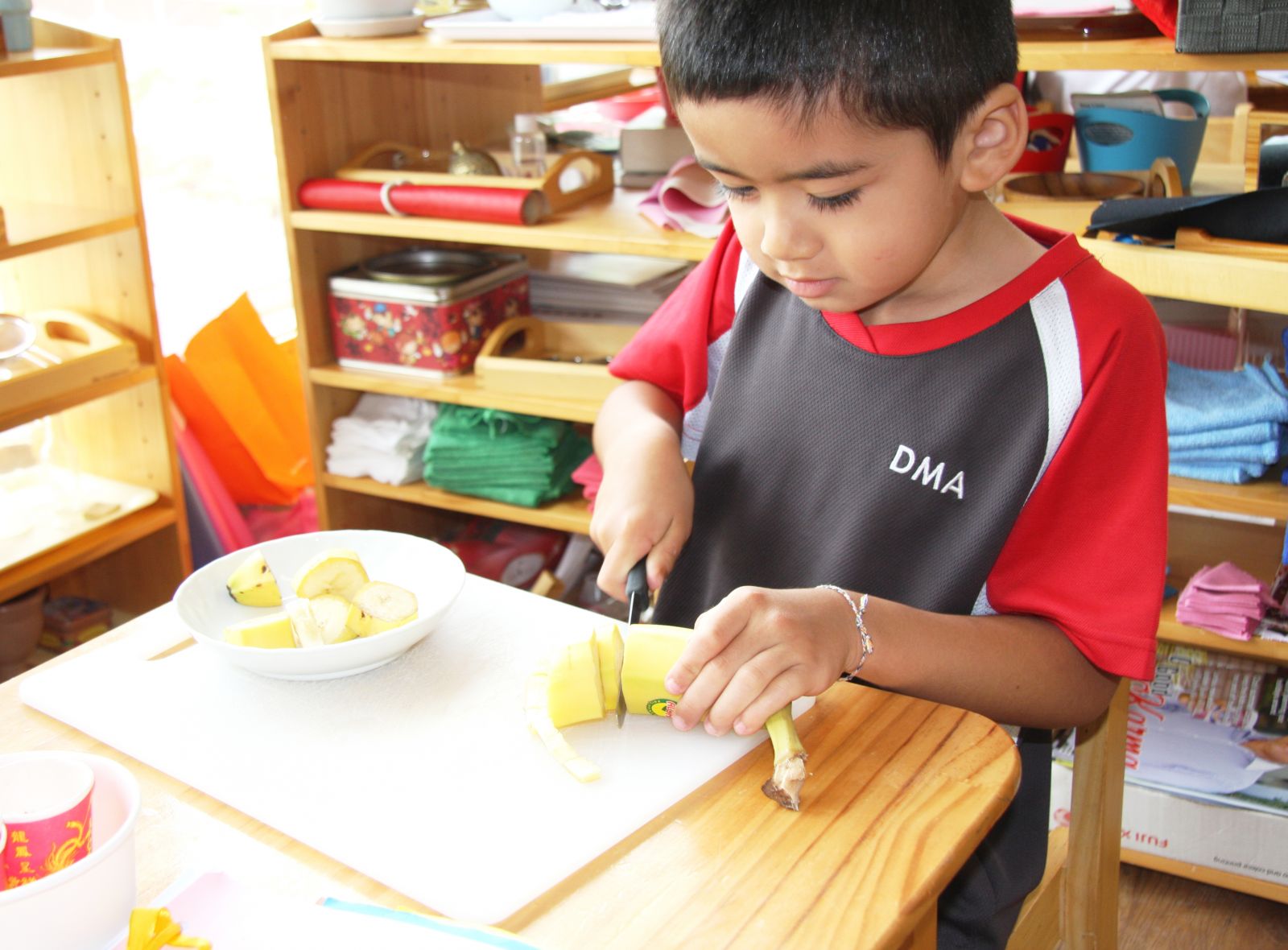 學校致力培養學生自發和獨立的學習態度。在蒙特梭利的學習環境中,學校為學生提供蒙氏設計的教材作為課堂上的指導者,而非答案,鼓勵他們自己解決問題,培養終身學習的心態。學生被賦予自己回答問題和以創造性的思維方式去解決問題的能力。學校認為抄寫式、書面上的功課考限制了孩子的思考空間和創意,而親手互動的教材,能讓學生明白,從具體操作到抽象概念的轉變。校長 Ms Jennifer 舉例,一些DMS學生在六、七歲時候已經可以接觸到二次方、三次方的概念,這在其他學校是聞所未聞的,但蒙特梭利的教材可以用非常具體的方式教授數學,學生能看到數學概念的具體形像,並且能自行計算複雜抽象的答案。