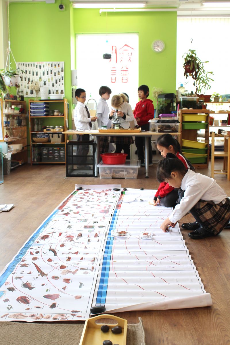 校長 Ms. Jennifer表示,世界上早有不少國際學校在中小學將IB 和 蒙特梭利課程結合起來,主要的原因是因為兩者課程能互相支持。IBPYP 探究單元學習具有跨學科主題,能有效地發展學生大腦的執行功能、專注力及判斷性的思維。而蒙特梭利教育法能把教室裏所有學科的知識都建立聯繫,透過故事「Five Great Lessons」裏各有不同的主題,例如關於地球誕生、生物的起源進化、各種各樣動植物的故事、人類文明發展、文字起源、數字、幾何的故事。學生在故事的幫助下,串聯起跨學科的知識,點燃了他們無窮的想像力,產生了濃厚的學習熱情,去探索不同知識的範疇。當學生有向着某一領域的趨勢,希望學會全新的知識時,跨學科學習就能為他們築起橋梁,成為重要的一環。
