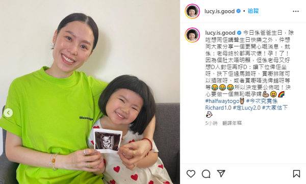 李燦森女兒 - 李元元(LUCY)的社交平台有好消息公佈! 媽媽借Lucy的帳戶向大家報喜:終於都再次懷!孕!了!