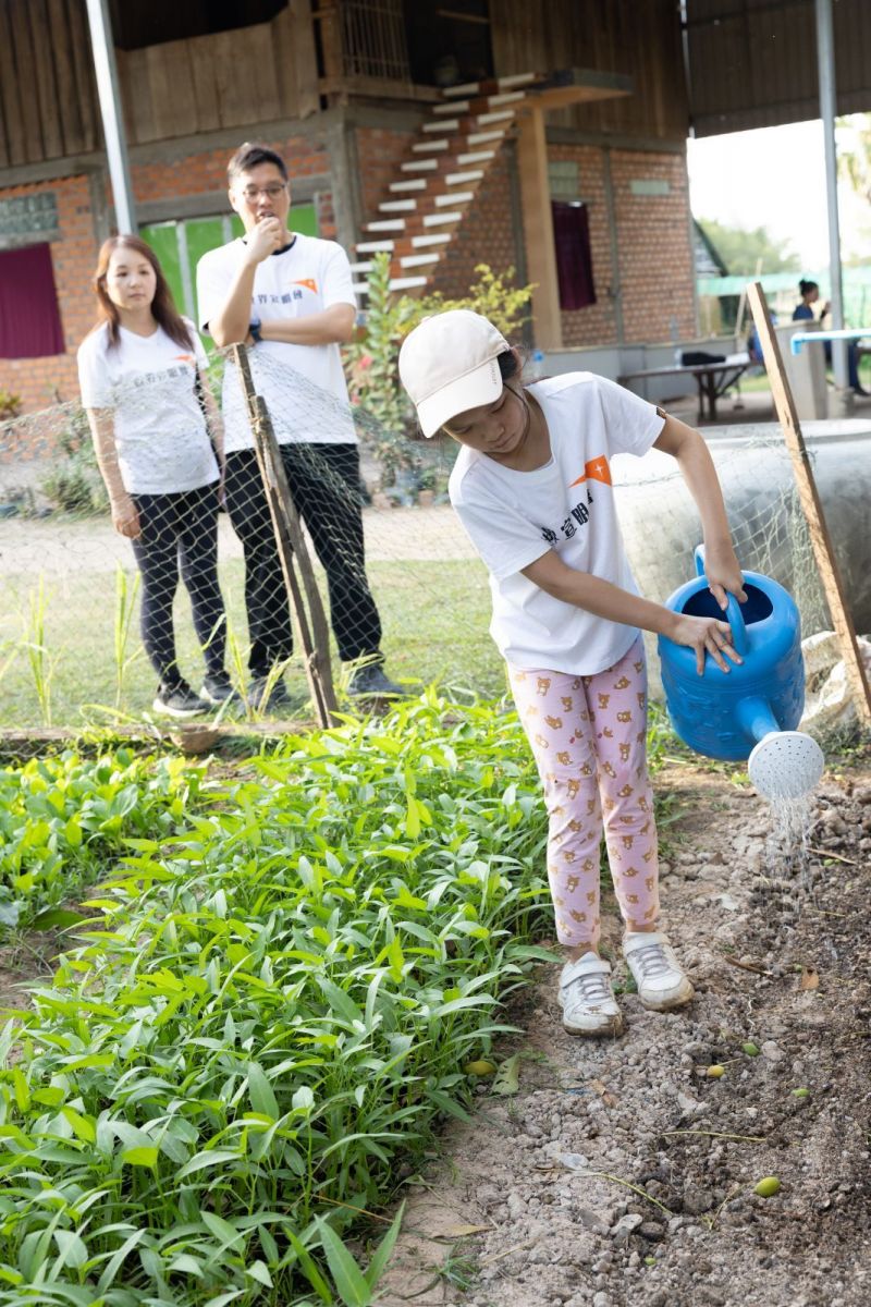 細女包包在助養家庭體驗農務。