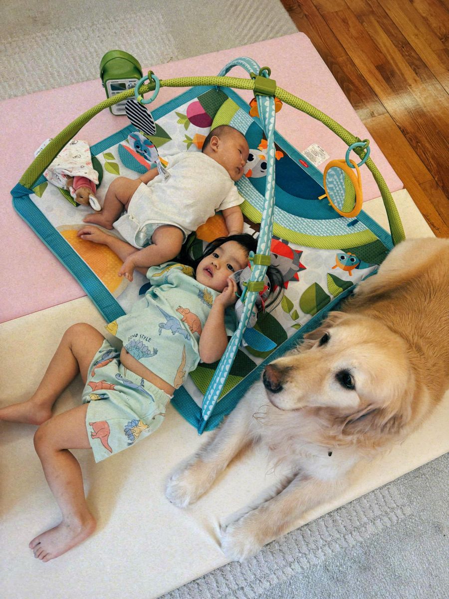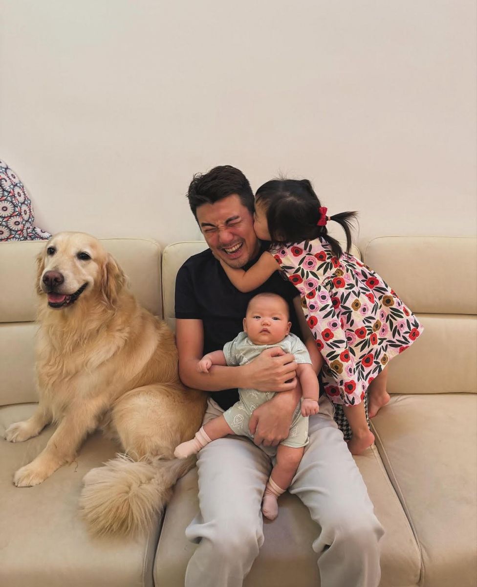 洪永城首度跟小Beryl 、Amber 以及狗狗Molly 三姊妹歡渡父親節。