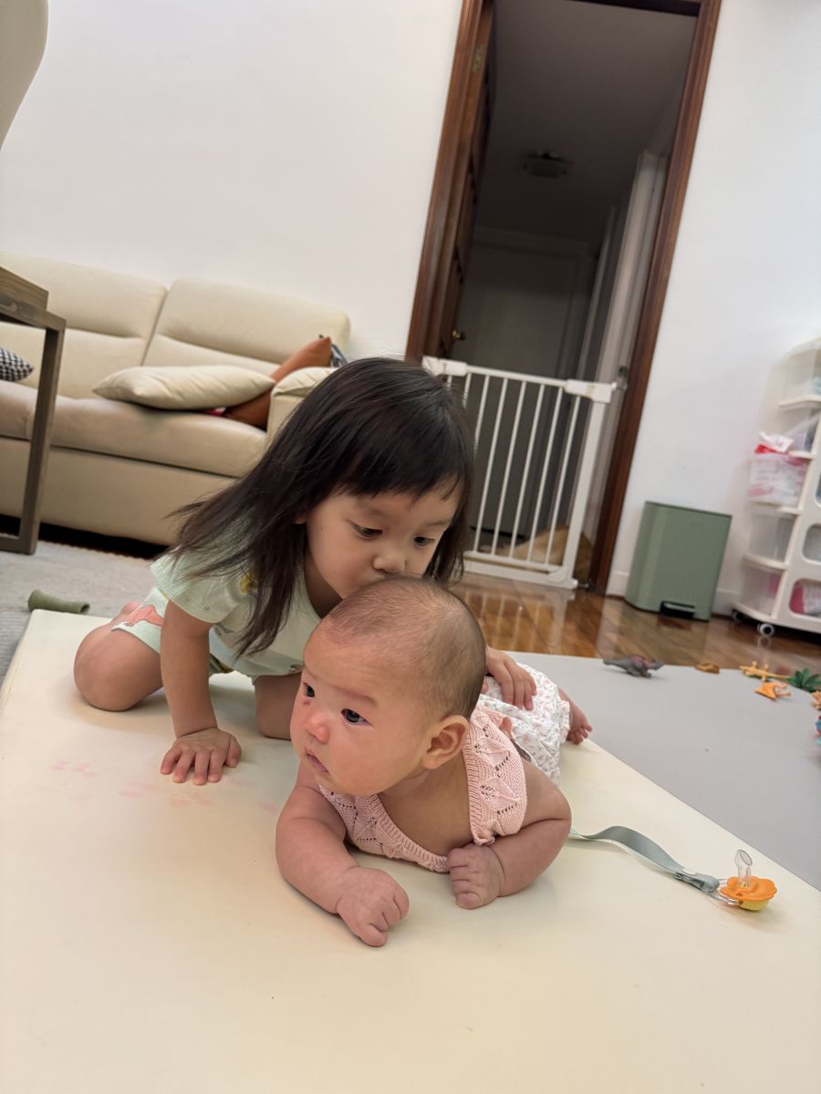 梁諾姸盡得媽媽的真傳,兩次懷孕都沒有一般孕婦的孕吐不適,但妨於疫情3年與世隔絕,孕婦的扺抗力亦較常人弱,陪同小Beryl一同成長的10個月之旅中,Inez3度中流感,8個多月又再中多次新冠肺炎,基本上每兩個月便要在大病中渡過。「重病,發高燒,最慘不可以特別亂吃藥,不可以食抗生素,只可以食最普通的止痛藥,但始終流感不可以用止痛藥去令我康復,所以只好自然療法地去處理。去到8個多月再中多了一次covid ,印象特別深刻,因為真的很辛苦。始終是呼吸道的感染、孕媽媽去到懷孕晚期,呼吸又不太暢順、還有,這一胎陀得有一點高,經常頂住胃、頂住道氣,我的呼吸是超級超級困難,去到一個點,呼吸不到哭了出來。然後臨盤前一兩天,不知吃錯什麼東西,竟然腸胃炎,甚至引起發燒到脱水,醫生因而要求提早一天入院,怕影響胎兒。最後妹妹拿了出來(剖腹產),我就最可憐,繼續肚痾,要過多天才可以痊愈出院。」