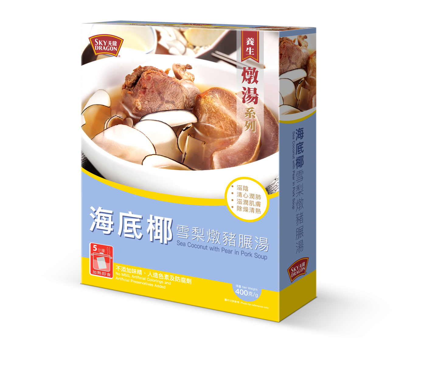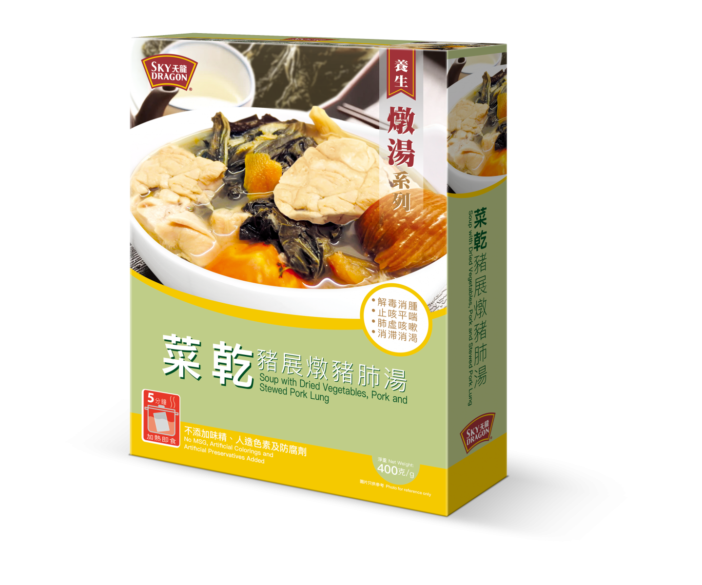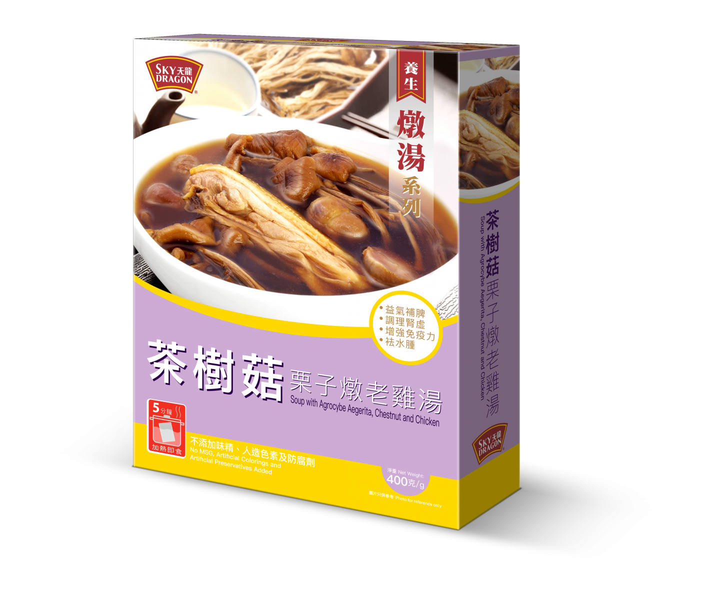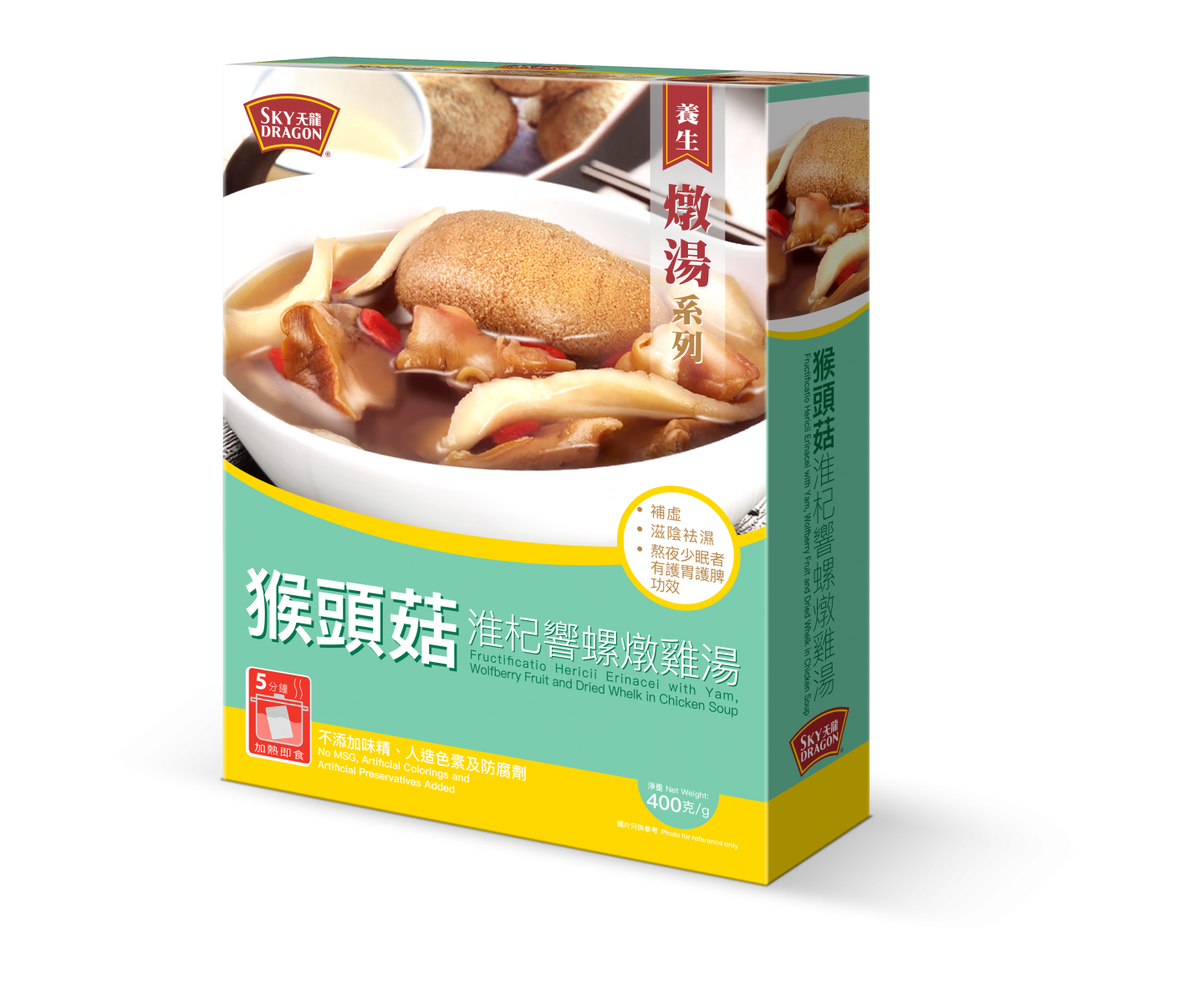 想要補身又不想麻煩的準媽媽可以考慮即飲湯包,天龍牌足料湯包採用上乘材料,不添加味精、無人造色素及防腐劑,整包湯袋放入熱水中,加熱約5分鐘即可飲用。