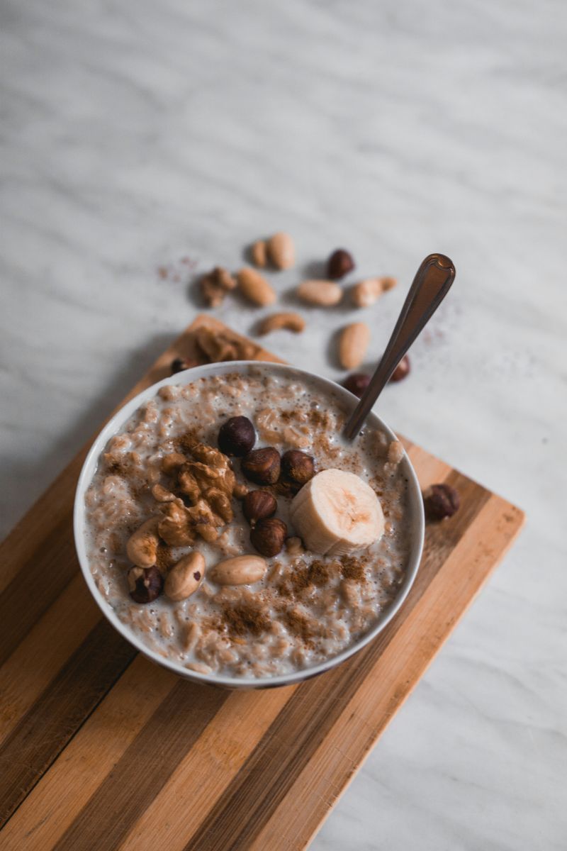 1) 將大燕麥片加入碗或容器中,倒入牛奶