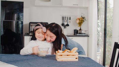 根據衛生署的建議,2至5歲的小朋友,每人每日應進食1.5份蔬菜及1份水果。而一份蔬菜即大約等於半碗煮熟的生菜;一份水果則大約等於2個奇異果或半個梨。可是有部份小朋友對水果或蔬菜十分抗拒,令家長們非常擔心孩子會因沒有攝取足夠的營養素而影響發育及成長。面對這個情況,家長不妨考慮多花心思,讓孩子發掘吃蔬菜及水果的樂趣,例如購買不同顏色及種類的蔬菜及水果,多選擇色彩繽紛的蔬菜及水果來吸引孩子的注意,引起他們的好奇心。同時,家長亦可將蔬菜及水果加入其他食物中,例如將藍莓丶奇異果或士多啤梨切粒加入低脂乳酪中,製成鮮果乳酪杯,又或是製作番茄碎蛋三文治丶車厘茄雞肉串燒等,健康又美味。