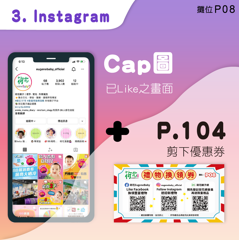 3. 出示換領劵(P.104),出示IG已追蹤畫面,可獲額外禮物。