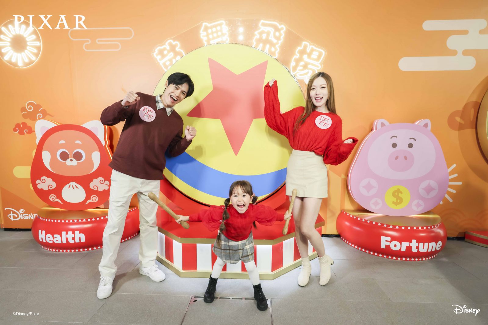 《熊抱青春記》的熊貓美美聯同《反斗奇兵》系列的火腿與大家拜年,圍繞著中央以Pixar標誌性藍黃紅星星皮球(Luxo Ball)作為鼓,寓意活力滿分同時為大家打氣加油,齊齊鼓舞飛揚。