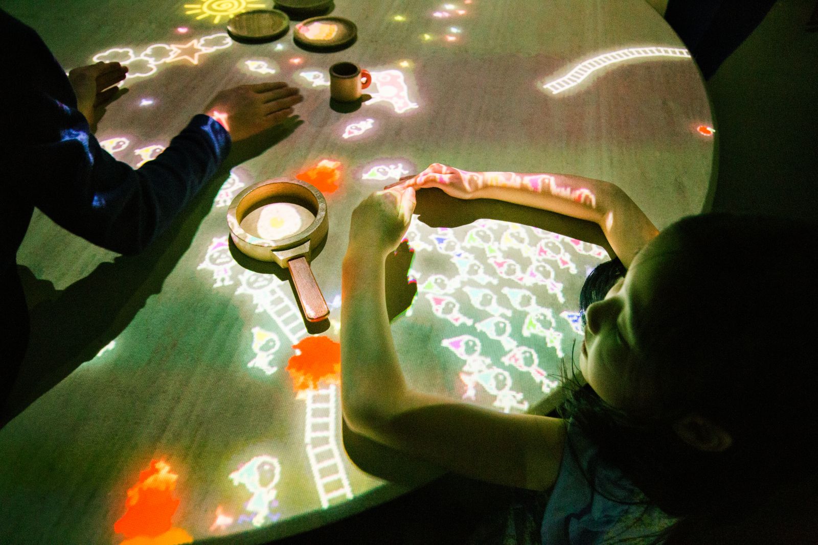 這張桌子是小人兒居住的桌子。小人兒在桌子裡邊跑來跑去,不會注意到您所在的這邊。但當您將手或其他東西放在桌子上時,小矮人就會注意到它,並跳到它上面。根據物體的形狀,小人兒可以滑行、跳躍和攀爬。