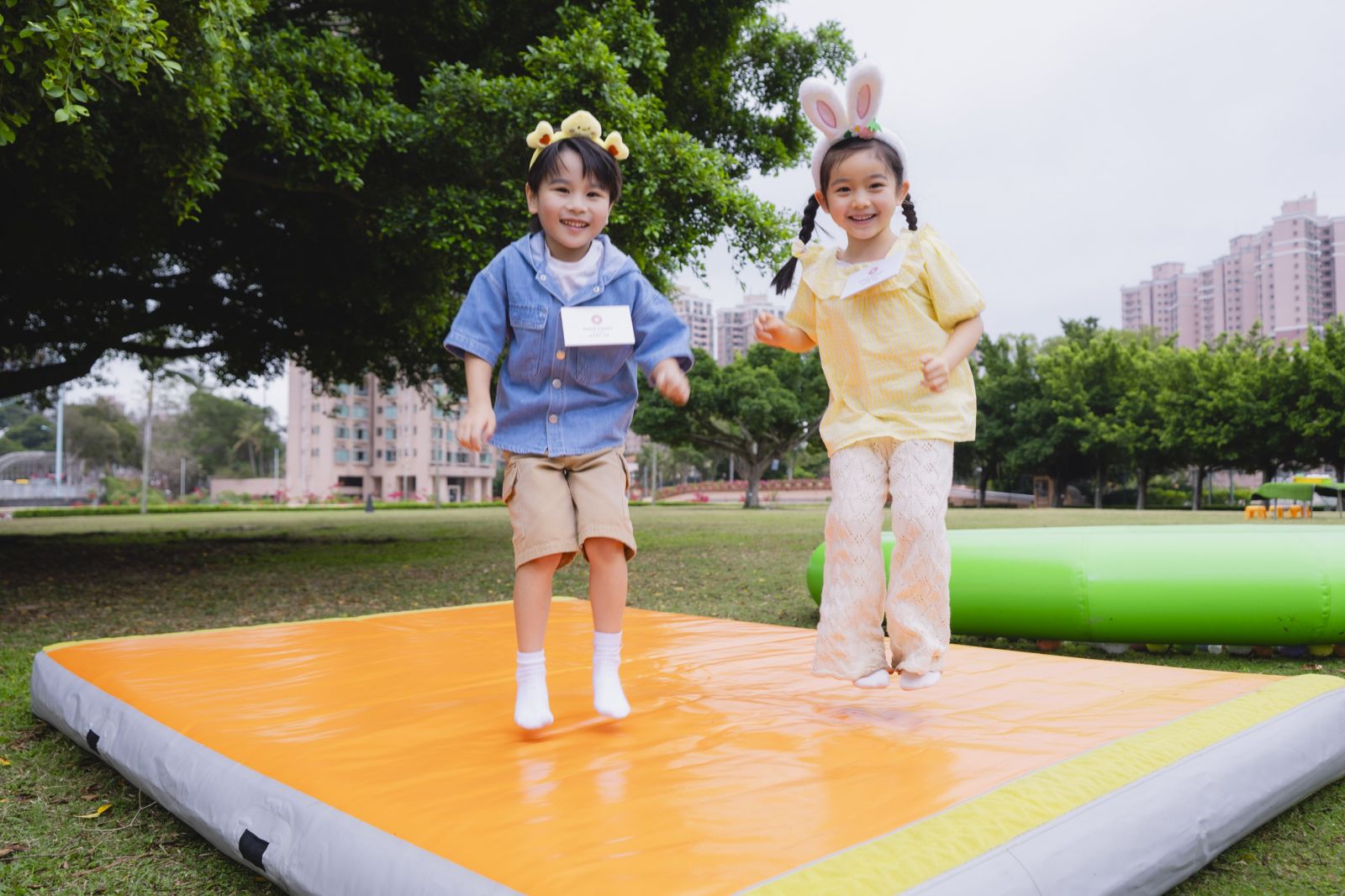 小朋友可Jump High盡情跳彈,亦可邊跳邊背起小雞造型的袋子,站在彈床上擺動身體以甩開袋內雞蛋,盡情放電之餘亦可挑戰身體協調能力。
