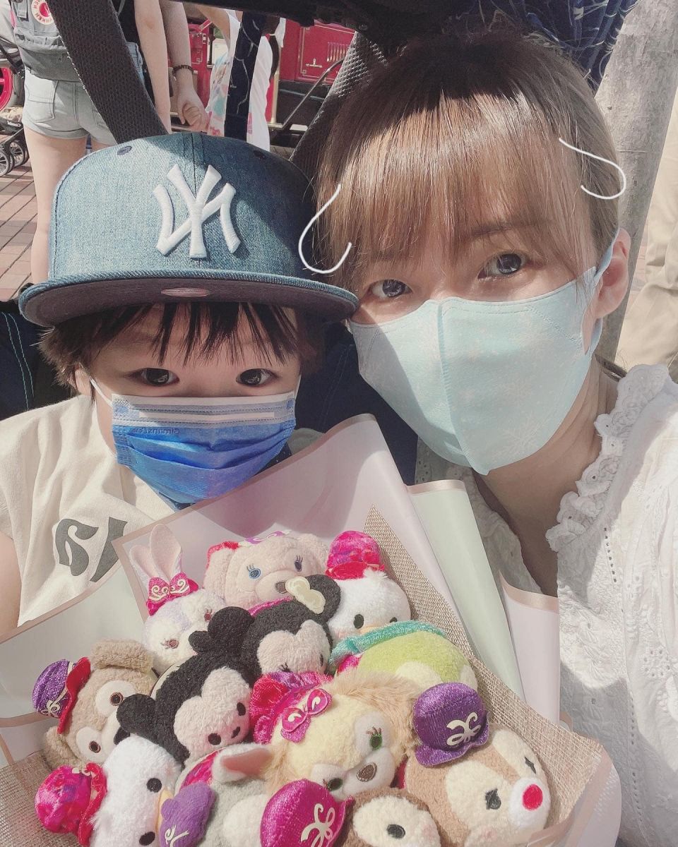 孫慧雪和帶兒子Riley排隊期間,Riley突然冒出來拿著公仔花說:「媽媽~Happy Mother’s Day!」令阿雪甜入心!