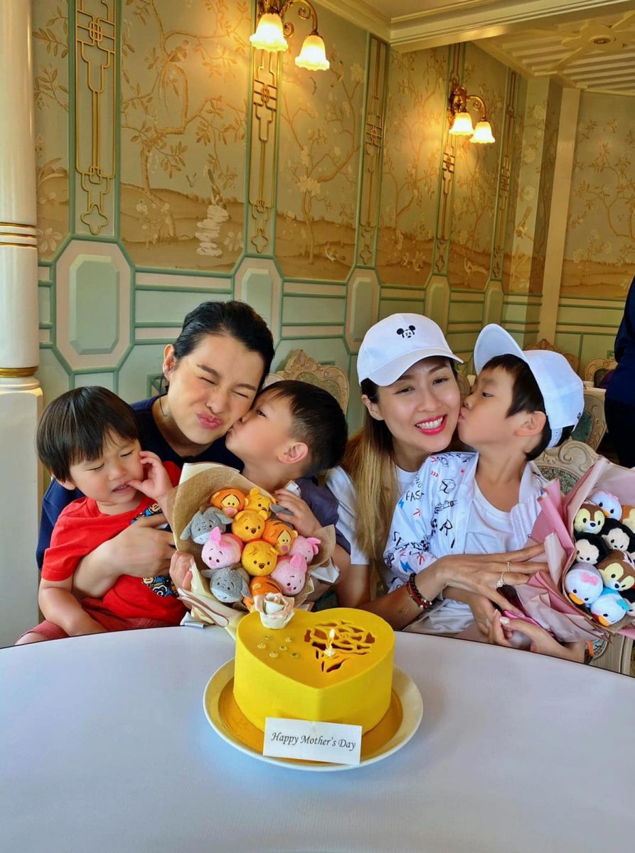 擁有三名兒子的胡杏兒相約與好友陳敏之母親節一齊度過並切蛋糕,仔仔們更送上kiss,so sweet呢!