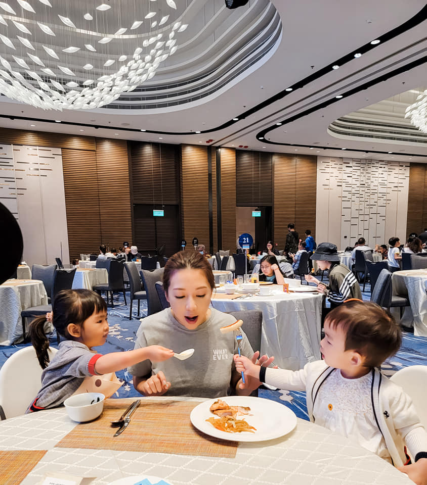 黃婉曼兩個女餵食早餐