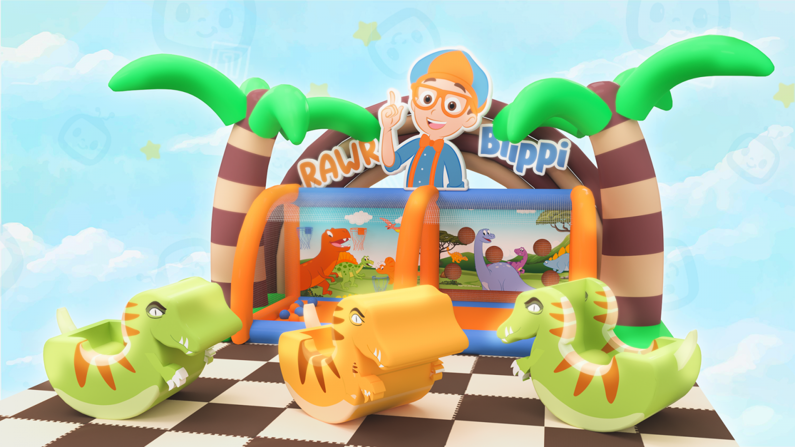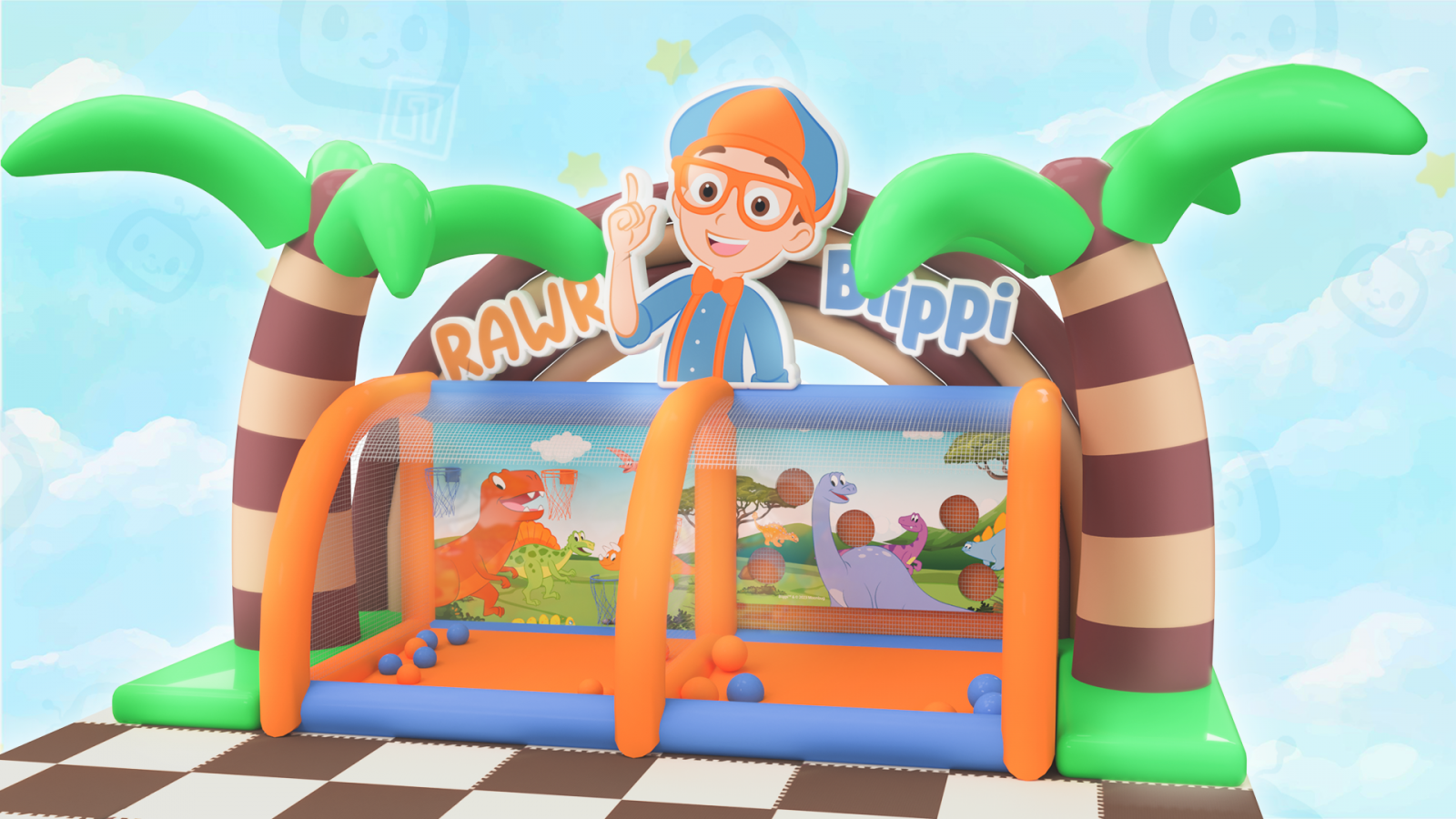 頭戴橙藍雙色帽、身穿藍色衫以及橙色煲呔與吊帶的Blippi,憑藉介紹各種動物知識,成為小朋友心目中的好朋友。小朋友可以在「Blippi與恐龍球類挑戰賽」吹氣遊樂設施中挑戰籃球及足球遊戲,更可以坐上恐龍造型搖搖椅於充滿夏日感覺的吹氣椰樹下合照,探索野外叢林!