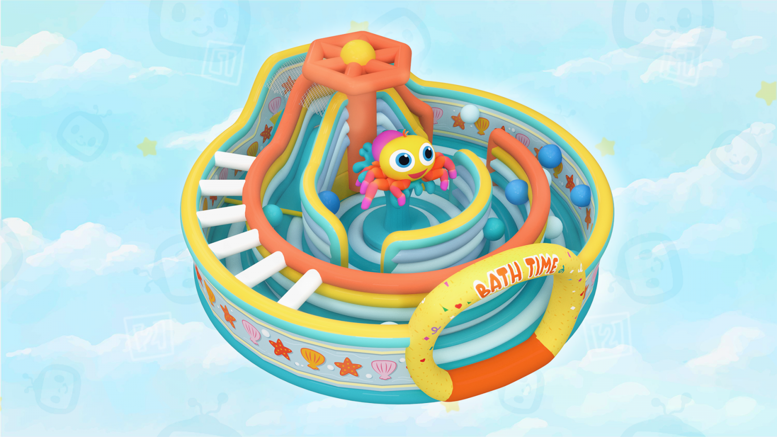 小蜘蛛Bitsy被困浴室,憑藉靈活身手,克服重重難關,最後成功回到花園之中。以Bitsy於浴室的奇遇設計而成的巨大吹氣迷宮,Bitsy將會在迷宮中央的水頭龍上為走進迷宮的小朋友打氣,只要有信心與勇氣,定能越過重重障礙成功逃出!