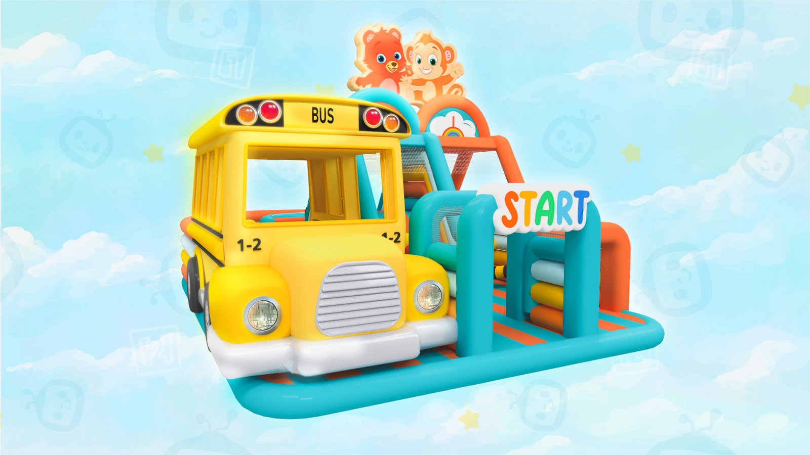 頻道大熱歌曲,必定包括觀看次數高達52億次的《Wheels on the Bus》!黃色學校巴士變身成為吹氣遊樂設施來到現場,成為玩樂及打卡熱點。小朋友需要攀登及穿越多重吹氣障礙物,才可登上巴士,一同高唱「The wheels on the bus go round and round~」。