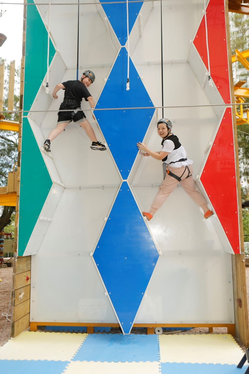 樂園內還有一些更高難度的挑戰!小朋友可以挑戰飛索橫渡,把自己扣在安全繩上雙腳凌空飛過去,刺激度滿分更可以體驗在飛翔的感覺。此外,媽媽更可以和小朋友一起走上最頂層,挑戰緣繩下降。教練會幫忙戴好安全裝備和固定好你們的位置,小朋友要克服畏高的感覺,抓住繩子自己踩住牆身一步一步向下走。最後一個也是歷奇樂園首創的,就是蜥蜴攀爬牆。顧名思義小朋友要好像蜥蜴一樣運用四肢爬至最高點,體驗成為蜘蛛人的感覺!攀爬牆難度雖然比較高,不過完成之後成功感也很大,另外也可以訓練孩子堅毅的精神。