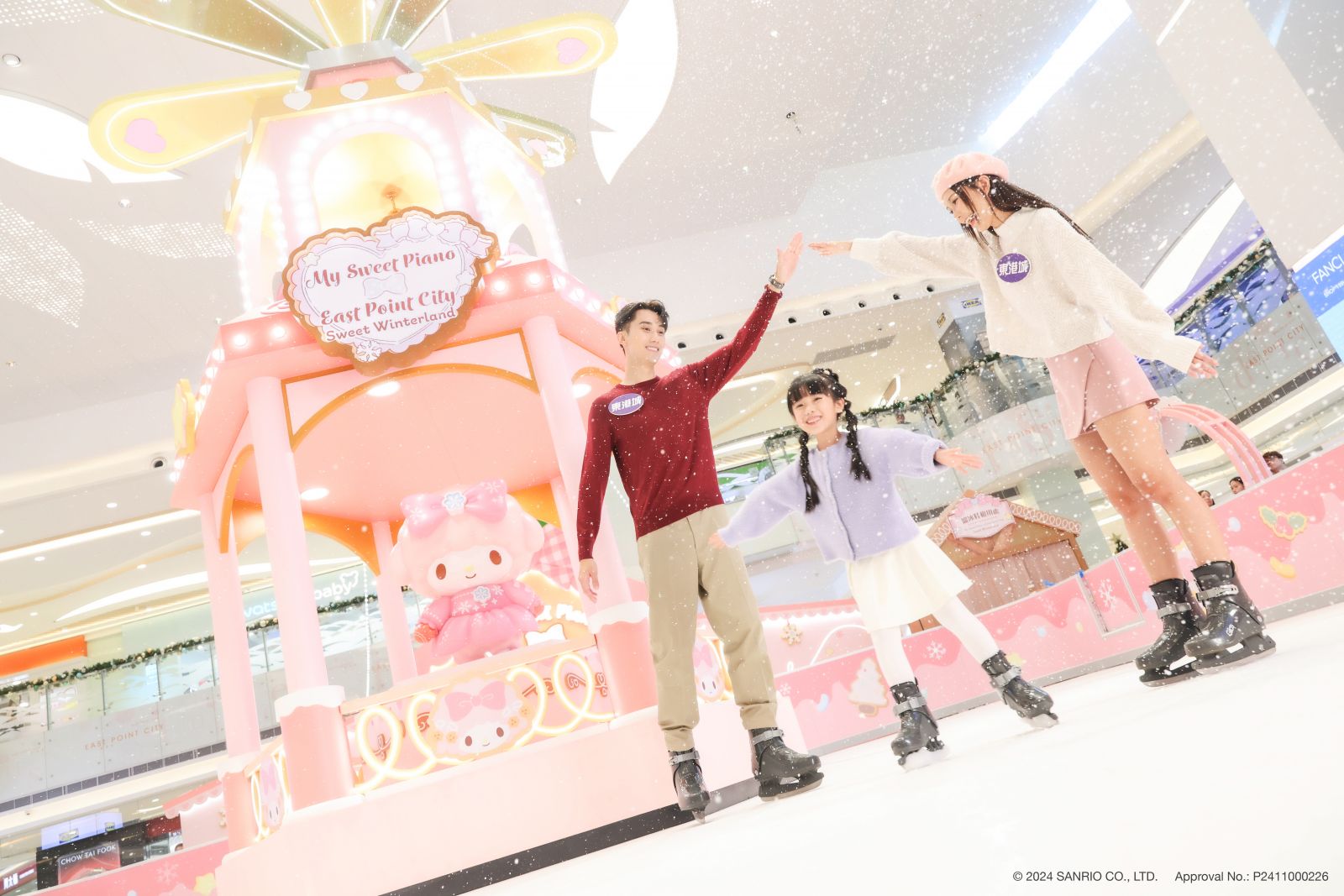 東港城聯乘Sanrio旗下超人氣角色粉紅小綿羊My Sweet Piano打造「甜蜜冰之國」,由即日至2025年1月1日,變成讓人少女心大爆發的粉色冰雪天地,設全港首個My Sweet Piano主題近2,000呎的環保溜冰場,加上6大甜蜜打卡場景,My Sweet Piano 將會化身為可愛溜冰小天使,配合定時從天而降的雪花,帶領大家在冰上翩翩起舞。