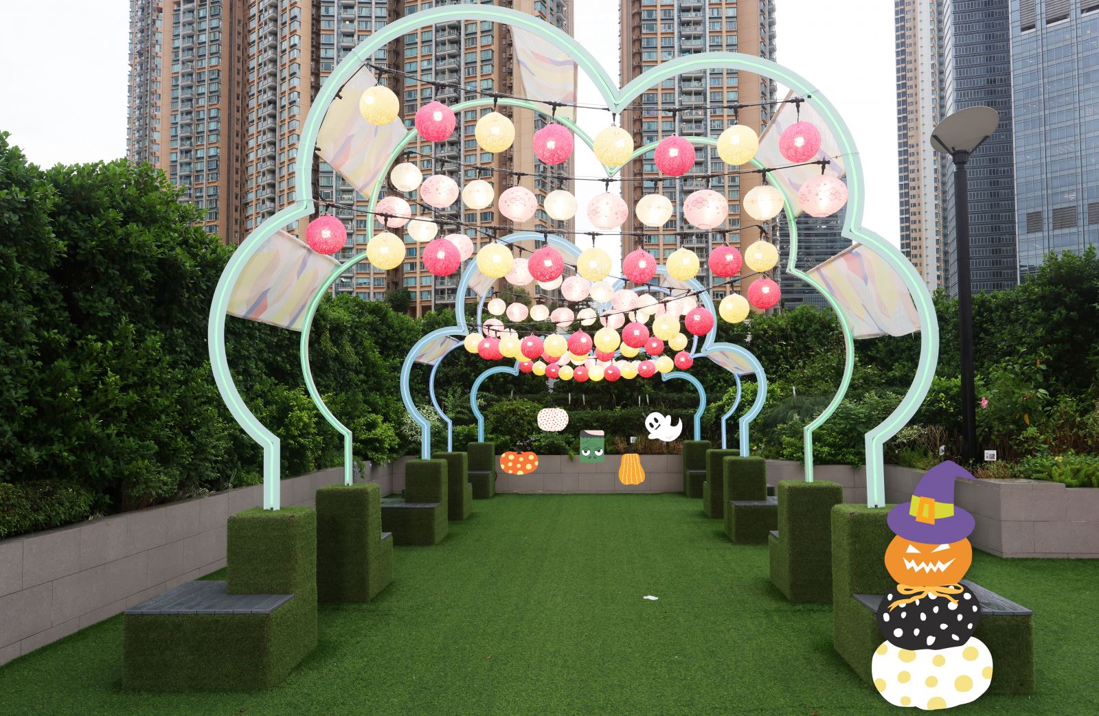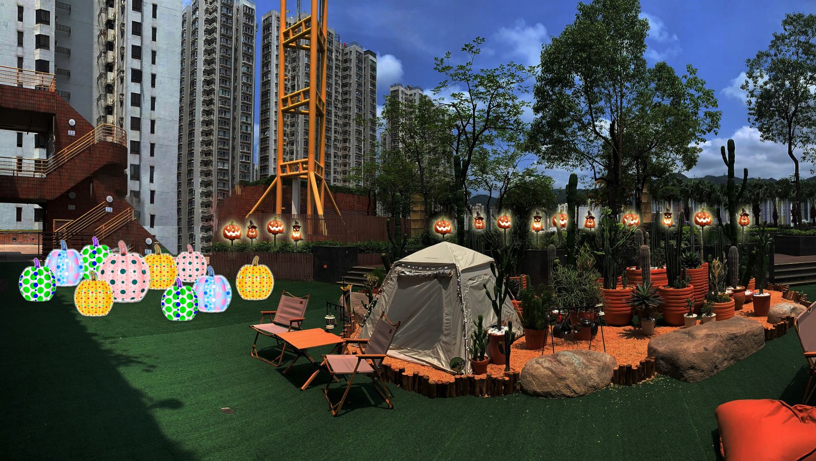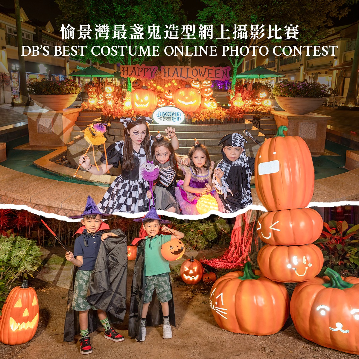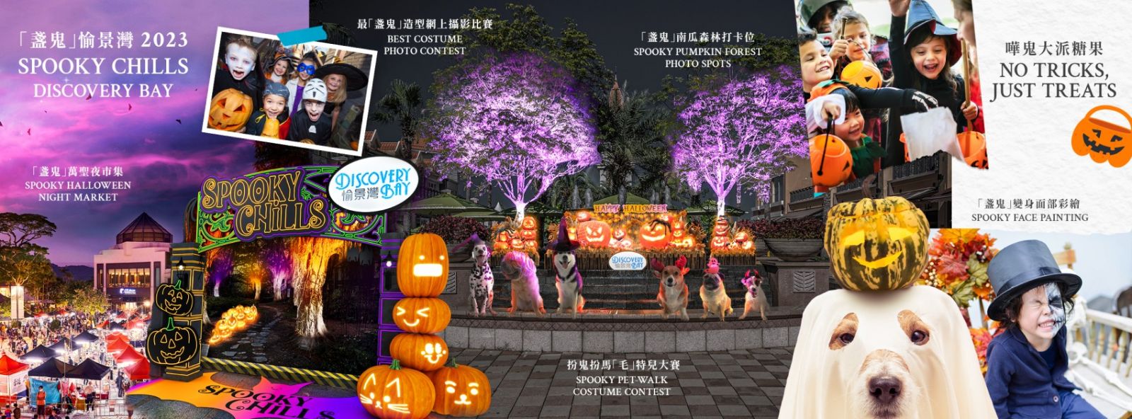 今年首次將愉景灣打造成「盞鬼南瓜森林」,搭配閃爍的南瓜燈飾,愉景廣場和愉景北商場將設置多個打卡位讓你盡情拍個夠。10月29日更舉行「愉景灣萬聖夜市集」及「最『盞鬼』造型網上攝影比賽」,市集匯聚超過70個特色攤位,售賣各式各樣的手作及萬聖節特色產品;大家可穿上創意萬聖節服飾,帶小朋友和毛孩參加和現場活動「扮鬼扮馬『毛』特兒大賽」,有機會贏取豐富獎品。