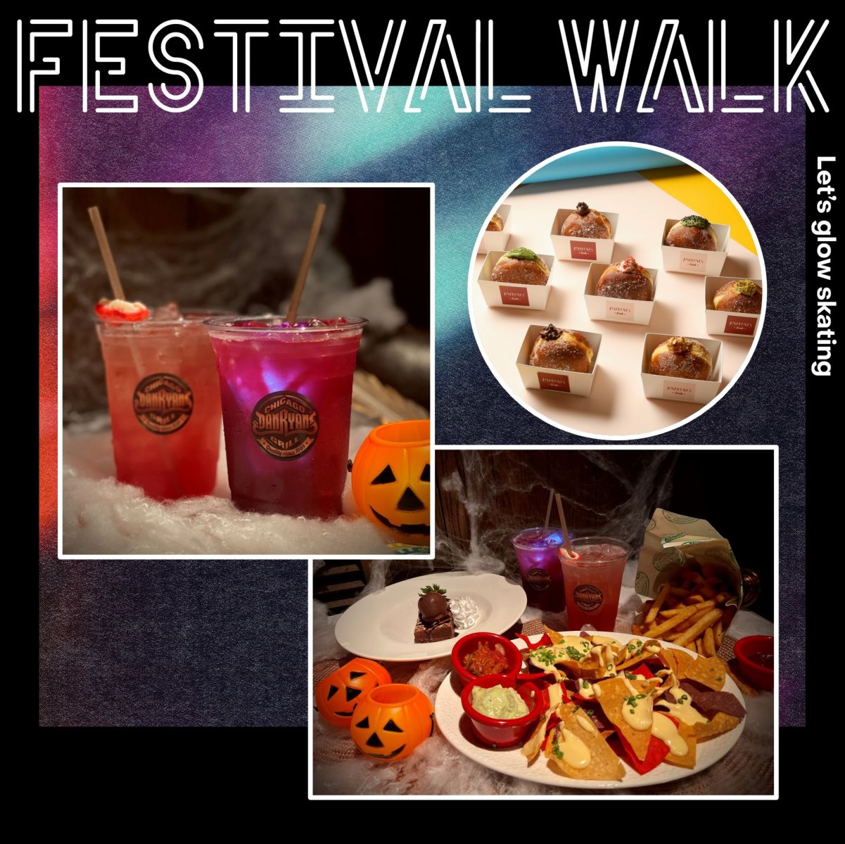 全港首個螢光夜間溜冰派對將於又一城舉辦,城中著名DJ 駐場大播Y2K Canton Pop炒熱氣氛,更有多個螢光裝置及驚嚇厲鬼四處潛伏,讓你在懸疑詭異的氛圍下盡情狂歡萬聖節!另外,美食攤位更會提供一系列萬聖節特飲及小食。