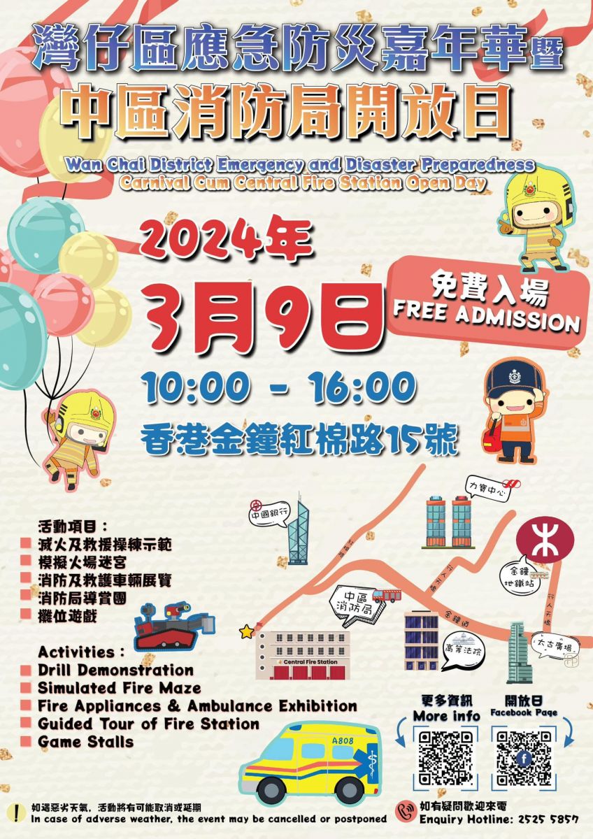 【最新消息:原定3月9日(星期六)舉行的灣仔區應急防災嘉年華暨中區消防局開放日將會取消。】