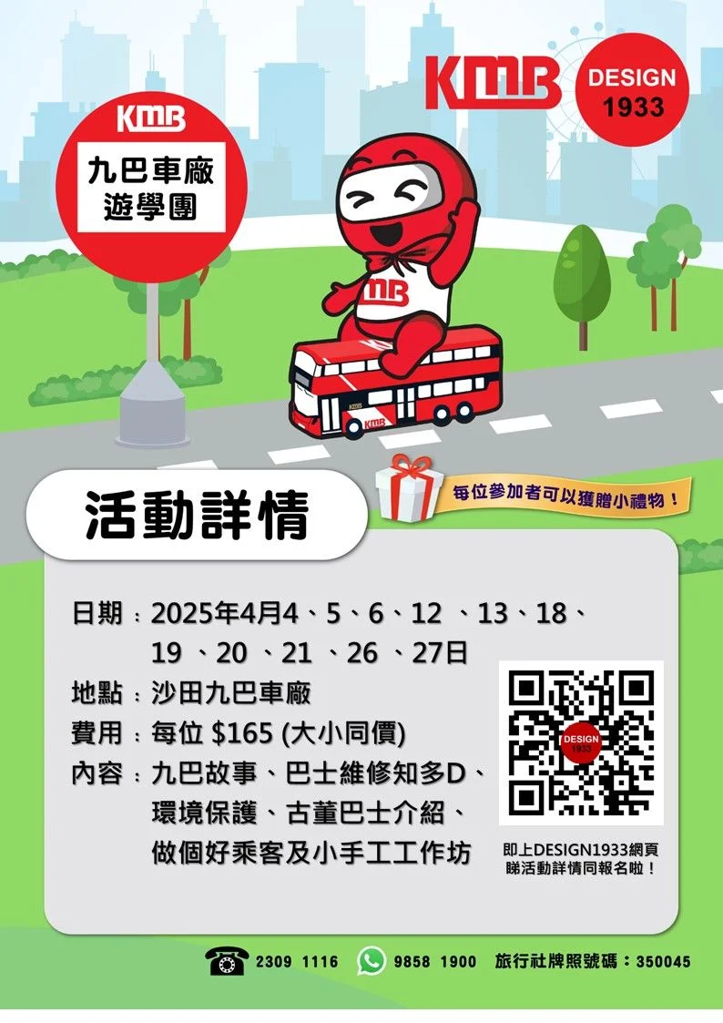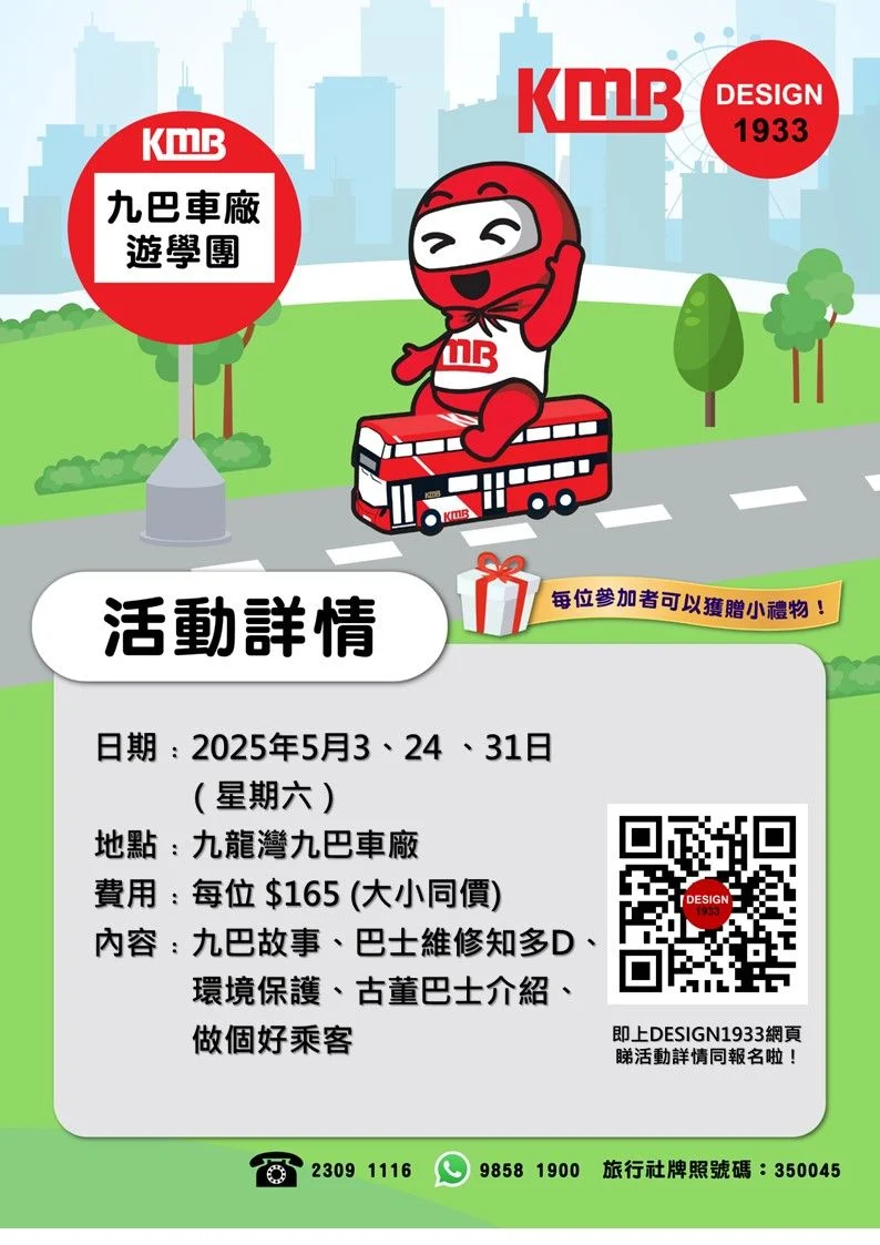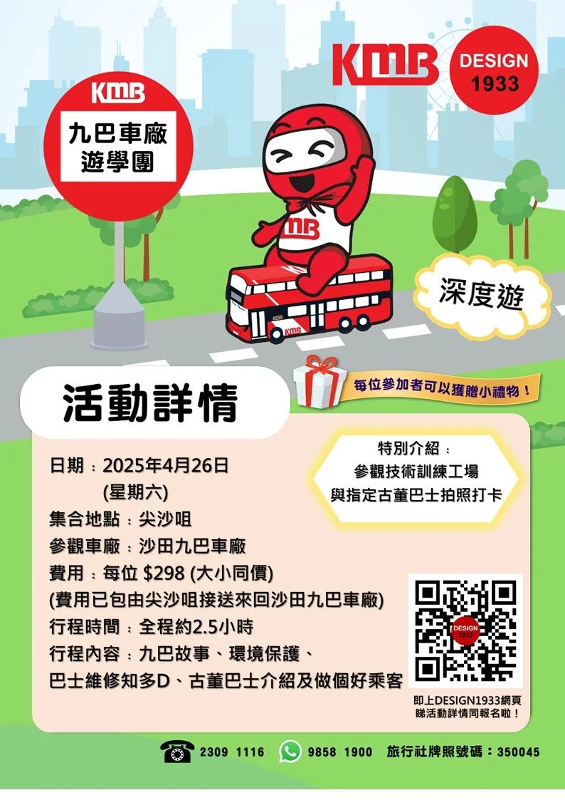 各位巴士迷留意,深受歡迎的「九巴車廠遊學團」於4月及5月再度登場,小朋友可體驗巴士洗車過程及參觀巴士維修,更有機會與古董巴士拍照打卡,完成後亦有證書留念。活動名額每次旋即爆滿,家中有小小巴士迷的家長不要錯過。