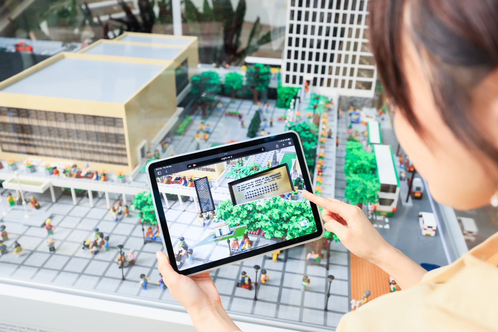 同時結合AR技術,參觀者只要用手機或平板電腦掃描展品旁的二維碼,該建築的組件便會出現於熒幕上,大家可以自行調節畫面上組件的大小及位置,挑選心儀的背景便能輕鬆地與模型拍攝獨一無二的合照,最適合「打卡」一族!