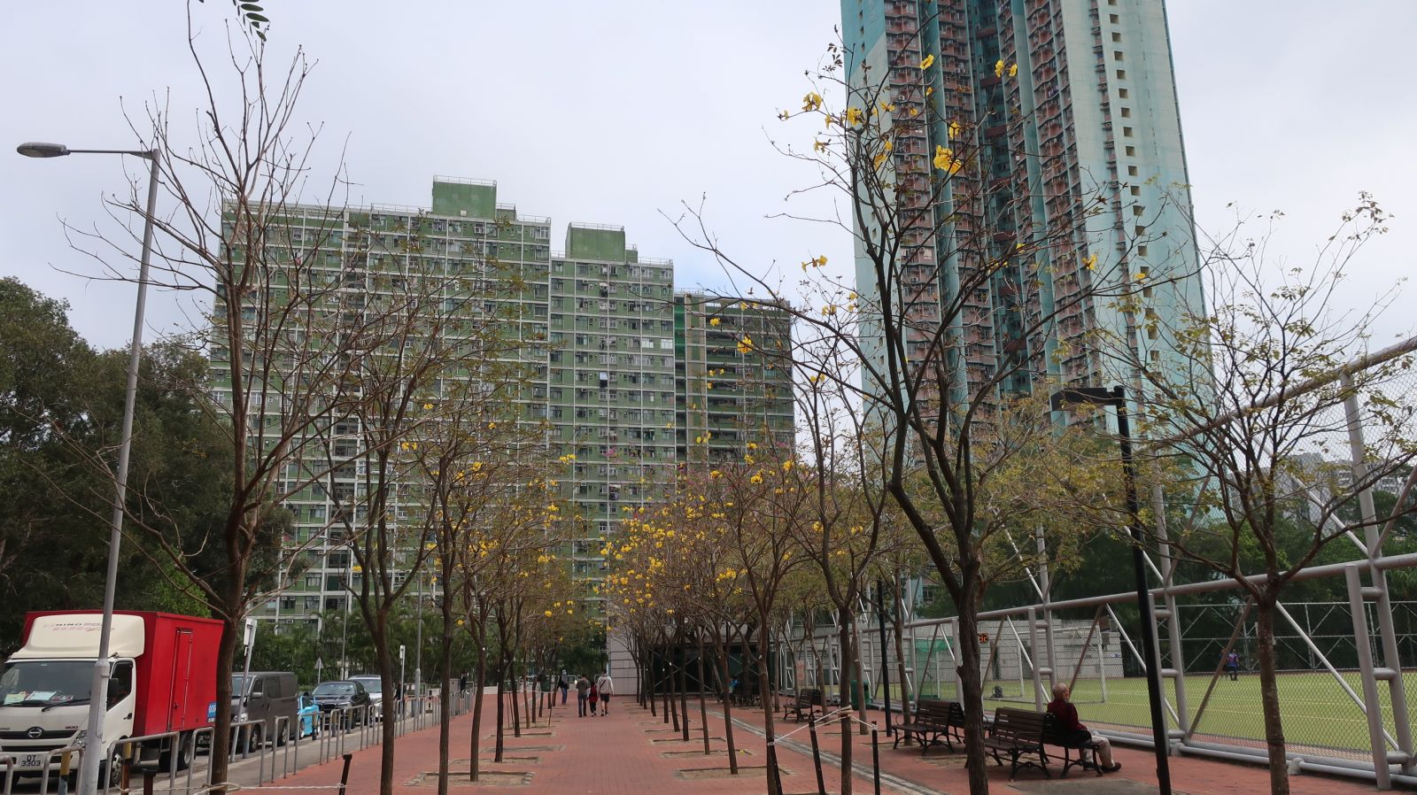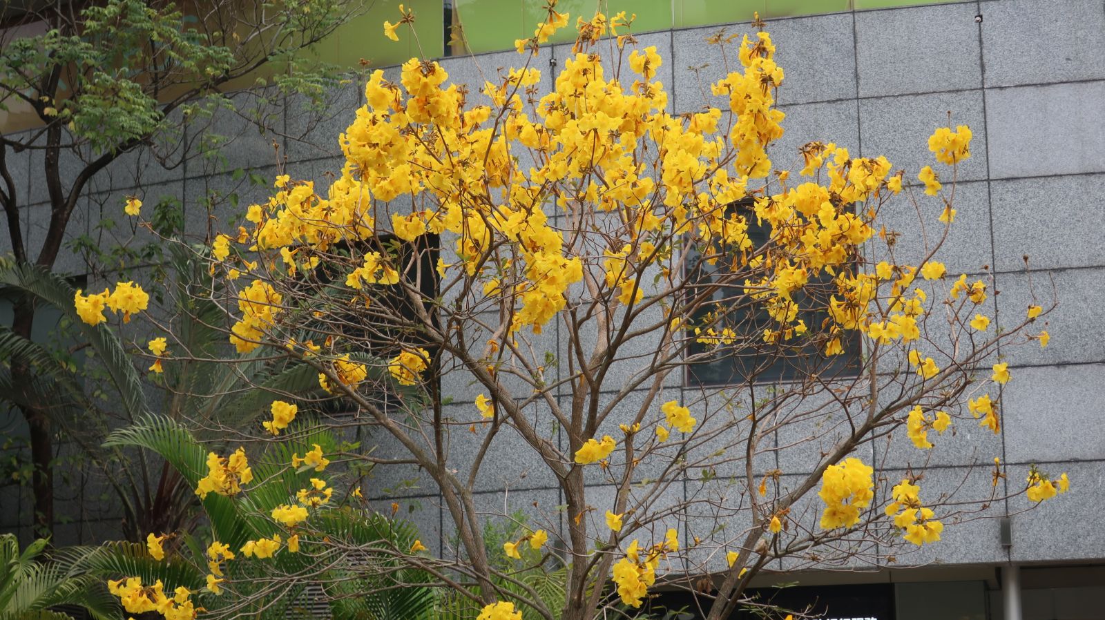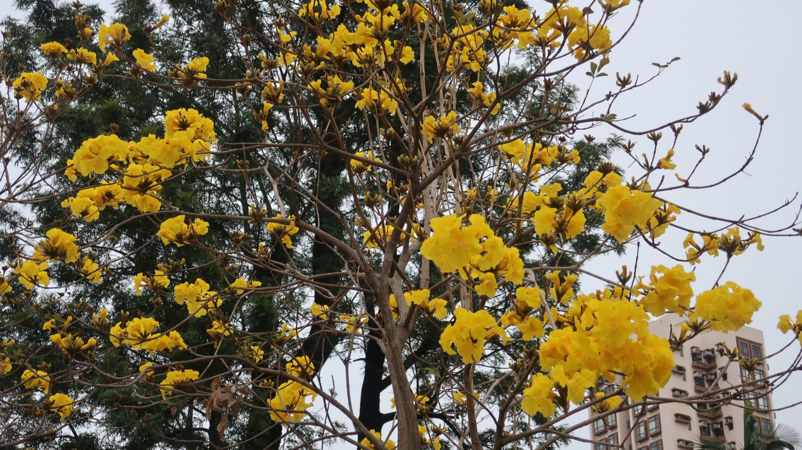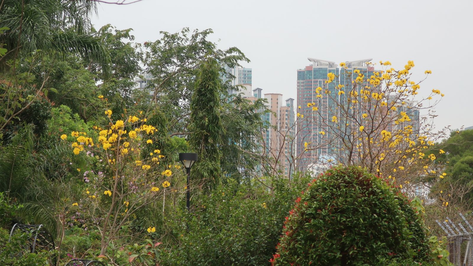 園內共種了約20棵黃鐘木。綻放時,金黃花海吸引了不少市民觀賞並拍照。