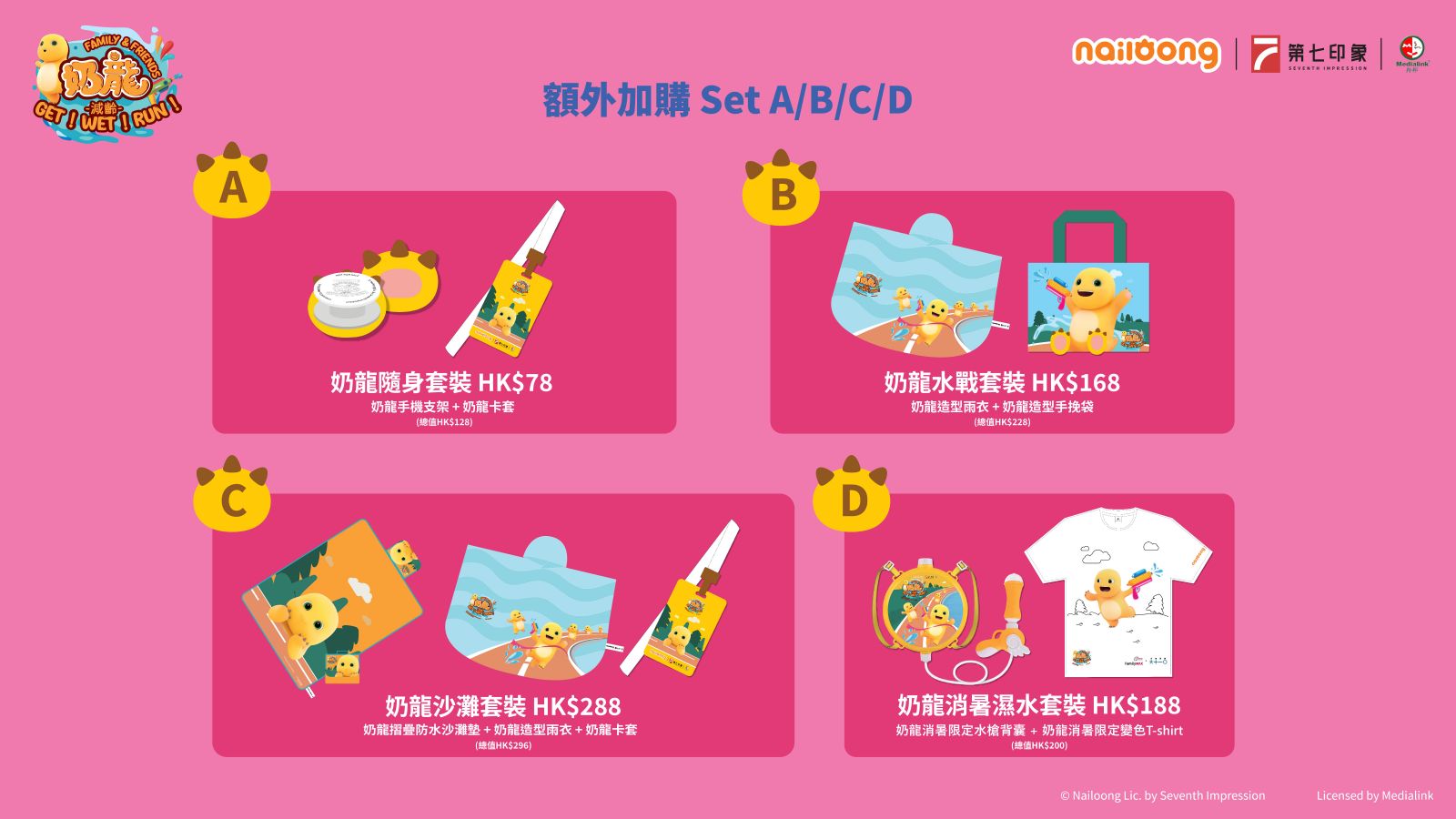 除了基本的跑手選手包外,大家也可藉此機會以優惠價額外加購值得收藏的4款奶龍限定套裝。