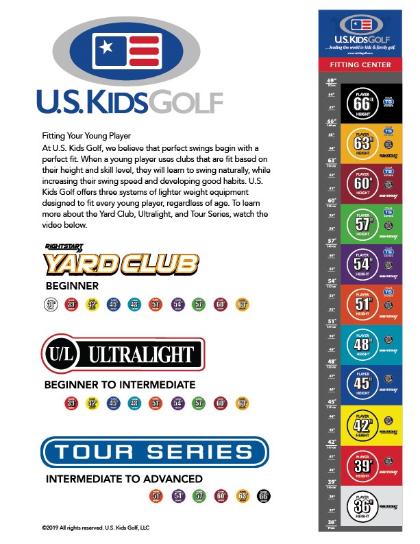 -US Kids Golf UltraLight球桿套裝乙套。(尺寸包括: 39”,42”,45”,48”,51”,54”,57”,60”,63”,球桿套裝包括: 球包/Driver/Wood or Hybrid/7/P/S/Putter, 總共4至7支球桿 (實際規格視乎尺寸而定),球桿套裝零售指導價格:$2600 ~ $3900 不等)