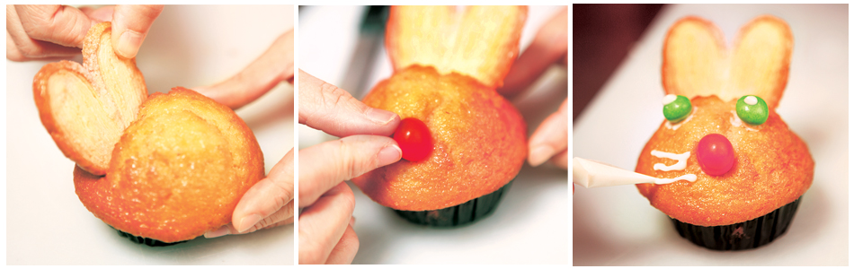 4. 將餘下的白朱古力裝入唧花紙袋內,唧成兔子的鬍子、嘴巴。