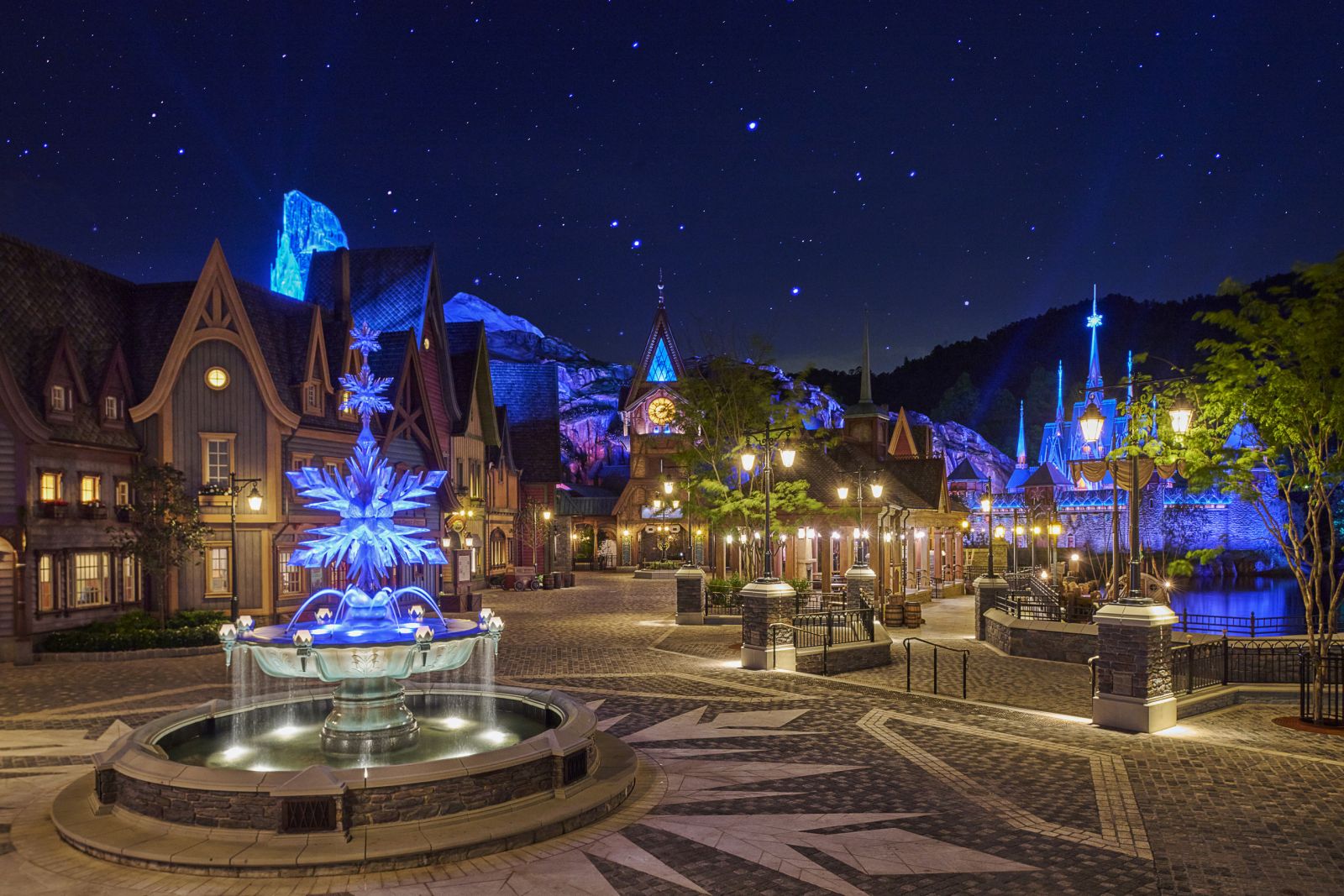 友誼噴泉是歡迎賓客進入小鎮的標誌,亦是紀念安娜和愛莎之間的真愛的另一小鎮地標。每天晚上更會為賓客送上驚喜時刻。
